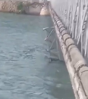 Parte de uma estrutura relacionada a um carrinho de manutenção da Ponte Pênsil se desprendeu e caiu nesta sexta-feira (26) causando preocupação de munícipes que fazem uso do local.