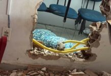O portão da garagem do prédio ficou parcialmente danificado pelo poste de energia elétrica. O trecho em que ocorreu o acidente ficou interditado até a retirada da fiação da via.