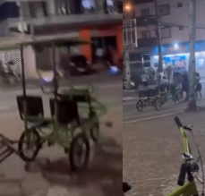 Imagens registradas por pessoas que estavam no local, mostram o triciclo estacionado na calçada e em seguida sendo levado pelo vento e atingindo um homem e uma mulher que estavam próximos à ciclovia que fica no local. Depois de atingir o casal, o equipamento caiu na avenida.