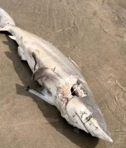 Um tubarão-galha-preta filhote foi encontrado morto e em estado de decomposição na faixa de areia da Praia do Jardim Real, na manhã desta quinta-feira (12), em Praia Grande.