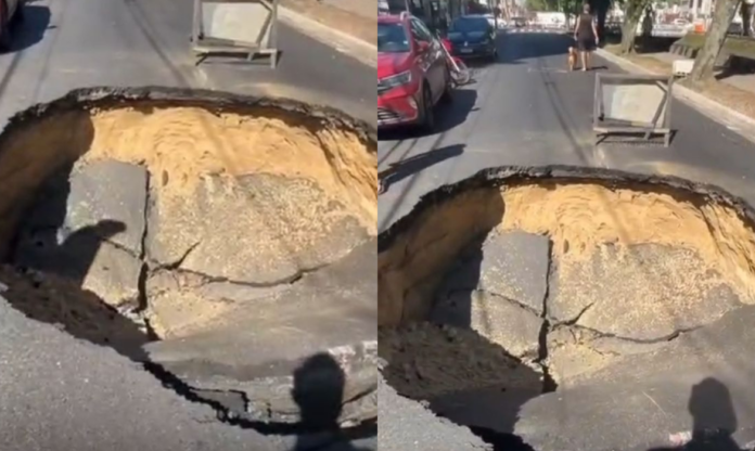 A cratera que se abriu no dia 4 de agosto, na Avenida Senador Pinheiro Machado, canal 1, em Santos, litoral paulista, causada por problemas na rede de esgoto da Sabesp, segue em manutenção pela companhia, que pediu prorrogação do prazo à Prefeitura de Santos até o final do mês. Inicialmente, a previsão era de que o local fosse restaurado em uma semana.
