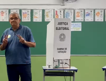 O candidato Carlos Freitas (DC) votou por volta das 10H, na Escola Ortega Antonio Domingues, no Jardim Casqueiro.