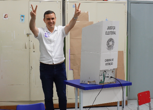 O César Nascimento (PSD), votou logo cedo no Bairro Vila Nova no Colégio Lincon Feliciano, ele estava junto com a candidata a vice-prefeita da cidade, Andrea Castro.