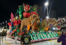 A escola iniciou o desfile 0h17 e finalizou 1h07, com o total de 50 minutos de apresentação.