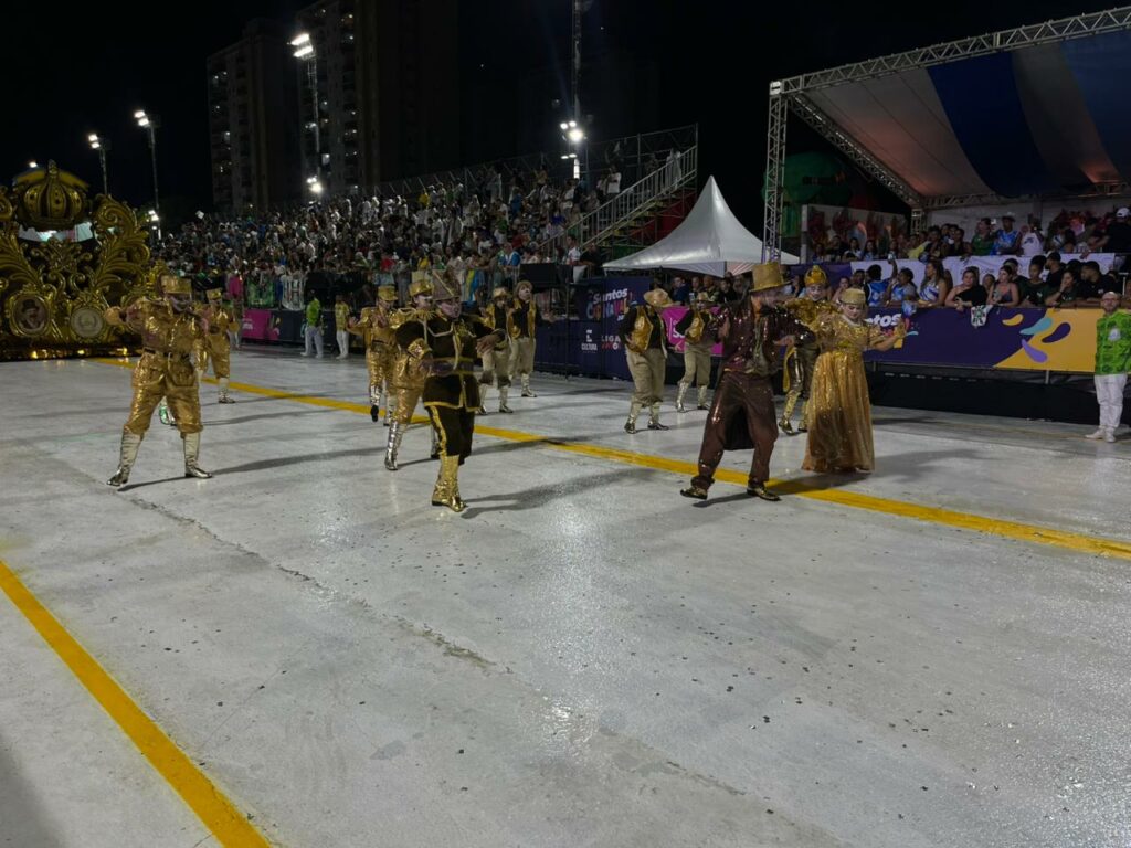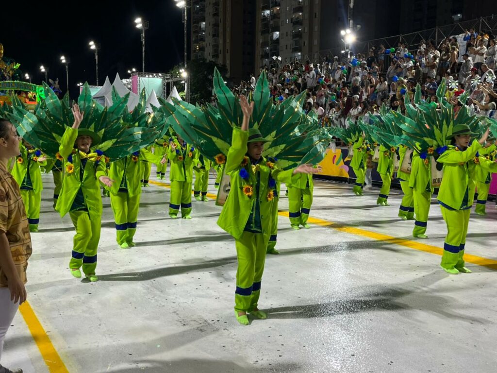 A escola entrou na avenida 3h56 e finalizou o desfile 4h50, somando um tempo total de 53 minutos.