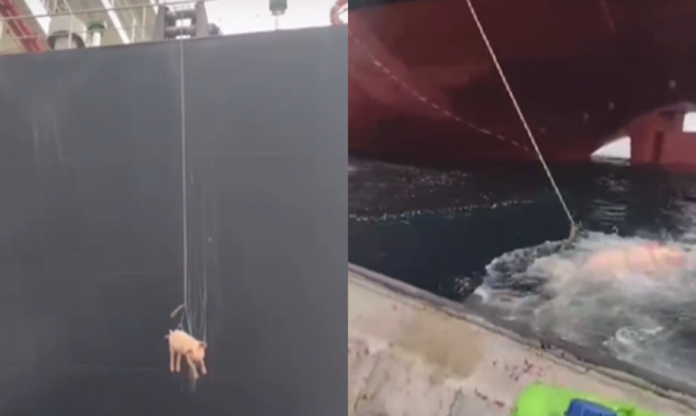 O Portal TH+ recebeu a denúncia, por meio de um vídeo, onde um homem é filmado realizando uma ação ilegal, amarrando porcos vivos em cordas, para que os mesmos sejam içados em navios cargueiros atracados na cidade de Santos, litoral paulista. Este pode ser o motivo do encontro de um mesmo animal que apareceu morto, boiando, no mês de dezembro de 2024.