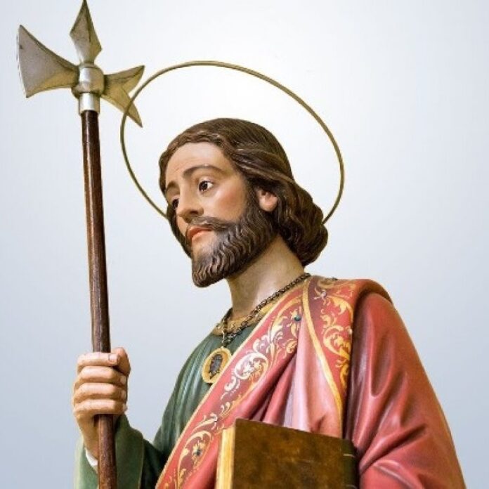 Devido ao seu martírio, São Judas Tadeu é representado em suas imagens segurando um livro, simbolizando a palavra que anunciou, e uma machadinha, o instrumento em que foi decaptado na Pérsia, no dia 28 de outubro do ano 70 d.C.