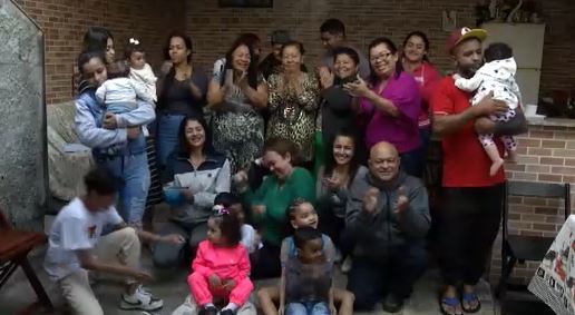 Maria Viana, que tem 5 gerações na família, conta a história de quando chegou em Santos. Aos 14 anos se casou com Senhor Antônio e se mudaram para o litoral a trabalho e aqui tiveram 6 filhos. Agora, Maria é homenageada por todas as gerações de sua família e conhece alguns de seus netos pela primeira vez.