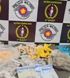 Entre as drogas, foram encontradas diversas porções de maconha, cocaína e crack, totalizando cerca de 2,5 kg. Na revista, foram localizadas duas cápsulas deflagradas de calibre .38 com um dos abordados.