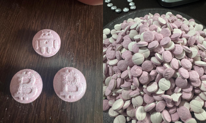 Na manhã de segunda-feira (29), os agentes dirigiram-se ao local e encontraram um saco pesando 109,5 gramas que continha comprimidos de coloração rosa prensados com dois desenhos, sendo alguns com símbolo do “bitcoin” e outros com o símbolo do “android”, identificados como “ecstasy”.