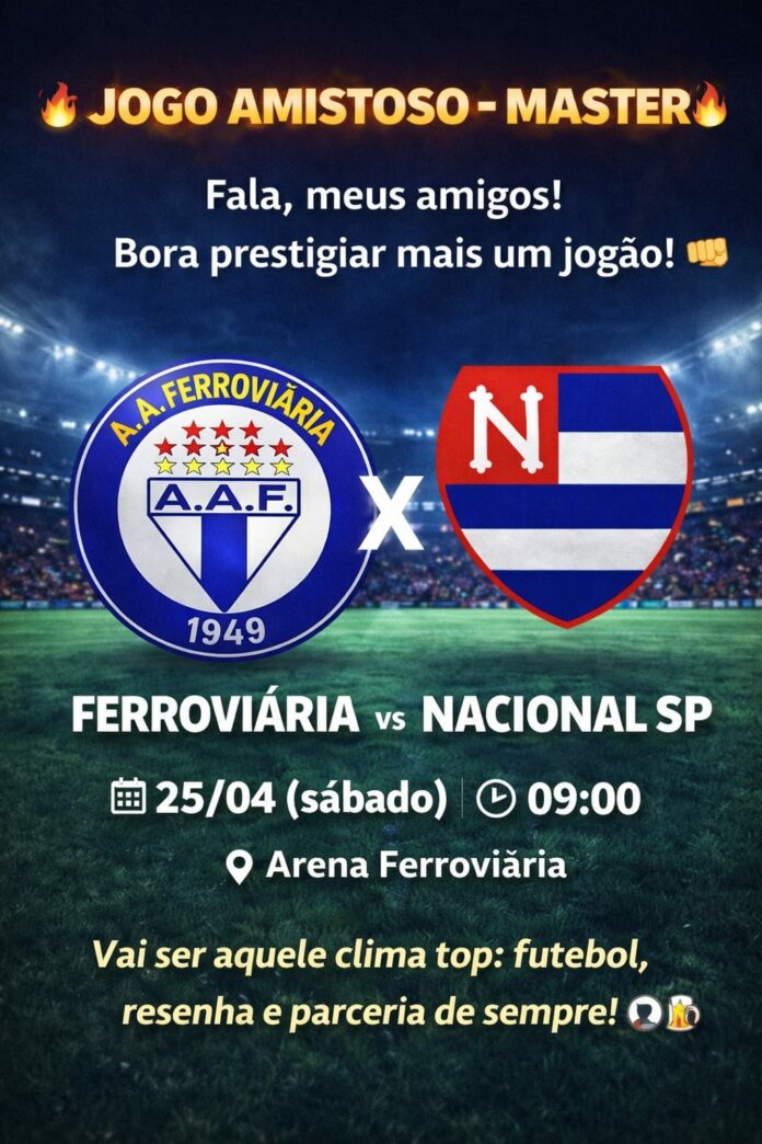 Neste sábado (25), às 9h, a cidade de São Vicente receberá um amistoso de futebol master, da categoria 60tão. O confronto será entre as equipes da Ferroviária e do Nacional, equipe da capital paulista.