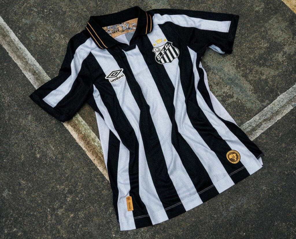 Na última segunda-feira (14), o Santos junto da Umbro anunciaram o lançamento da camisa 2 para a temporada de 2026. O uniforme, que traz as tradicionais listras brancas e pretas, foi reinterpretado dentro do conceito de brasilidade, que o clube adotou para os uniformes deste ano.