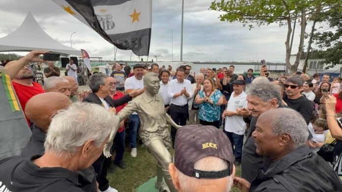 Com a presença de 8 ex-jogadores que marcaram época no time do Santos Futebol Clube, o Píer do Casqueiro em Cubatão recebeu na tarde desta sexta (19) a estátua de Edson Arantes do Nascimento, o Pelé.