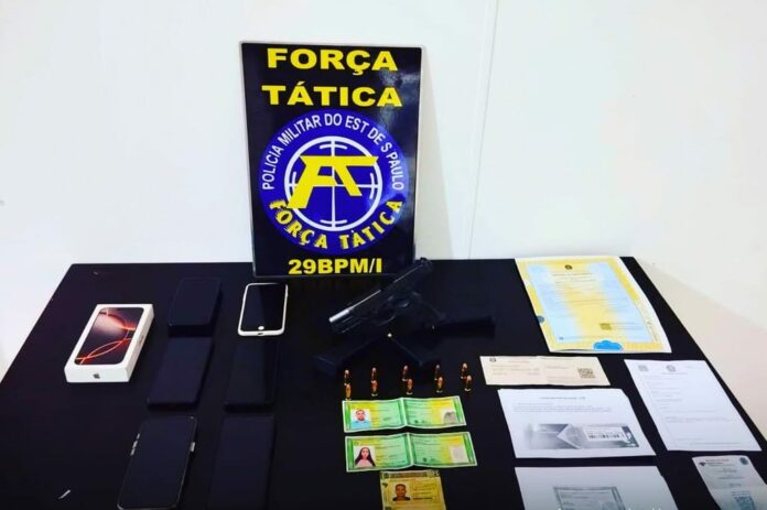 Um homem foragido da justiça foi capturado por policiais da Força Tática do 29º Batalhão da Polícia Militar do Interior no bairro Itaoca, em Mongaguá. O indivíduo foi enquadrado pelos crimes de porte ilegal de arma de fogo e uso de documentos falsos.