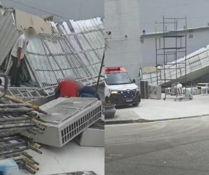 Dois trabalhadores terceirizados ficaram feridos após caírem de uma estrutura durante obra no Litoral Plaza Shopping, na Praia Grande. Segundo informações, a dupla realizava instalação de aparelhos de ar-condicionado na parte externa de uma nova loja que atenderá no local.