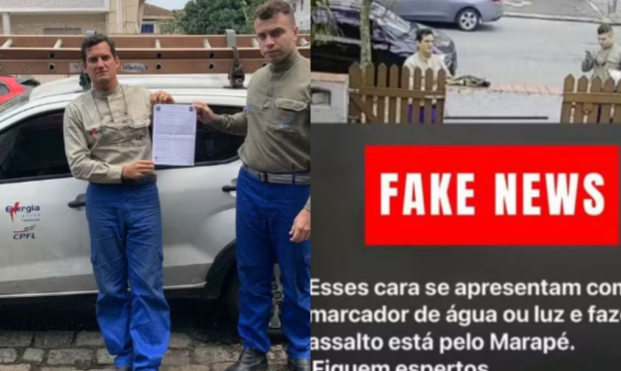 Dois funcionários, sendo um técnico de energia elétrica e o outro, seu ajudante, foram vítimas de ataques após uma moradora do bairro Marapé, em Santos, litoral paulista, divulgar uma ‘fake news’ na internet, os chamando de assaltantes. A mulher divulgou uma foto da dupla, e a imagem repercutiu, como se estivessem tentando entrar na casa das pessoas.