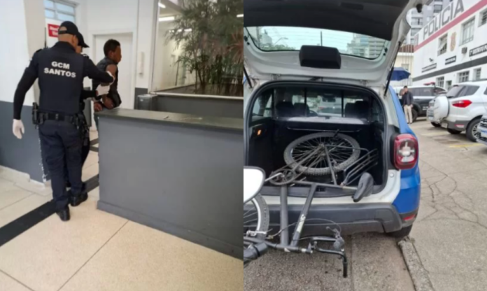 Um homem, de 26 anos, foi preso em flagrante após furtar uma mulher que aguardava o transporte público em um ponto de ônibus, no bairro José Menino, em Santos, litoral paulista. O criminoso foi surpreendido por um guarda municipal que estava de folga e passava pelo local quando o caso aconteceu.