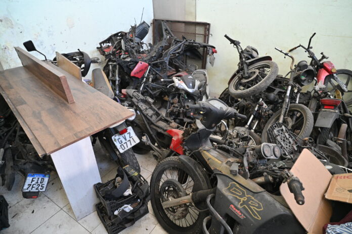 Após procedimentos legais que permitiram o acesso ao interior do local, foram encontradas diversas motocicletas e componentes de origem duvidosa.