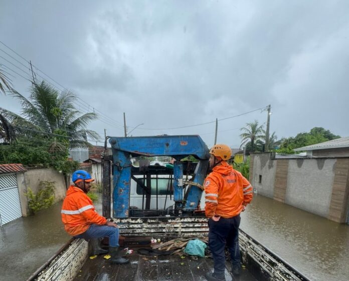 A chuva atingiu de forma preocupante a cidade de Peruíbe, litoral paulista, na quarta-feira (8), e deixou alguns bairros totalmente alagados após uma tempestade. A Defesa Civil do Estado de São Paulo está no local auxiliando famílias afetadas, e reforçou nesta quinta-feira (9) a ajuda humanitária. Um caminhão com 500 itens, entre eles água, roupas e kits de higiene pessoal foi enviado ao município.