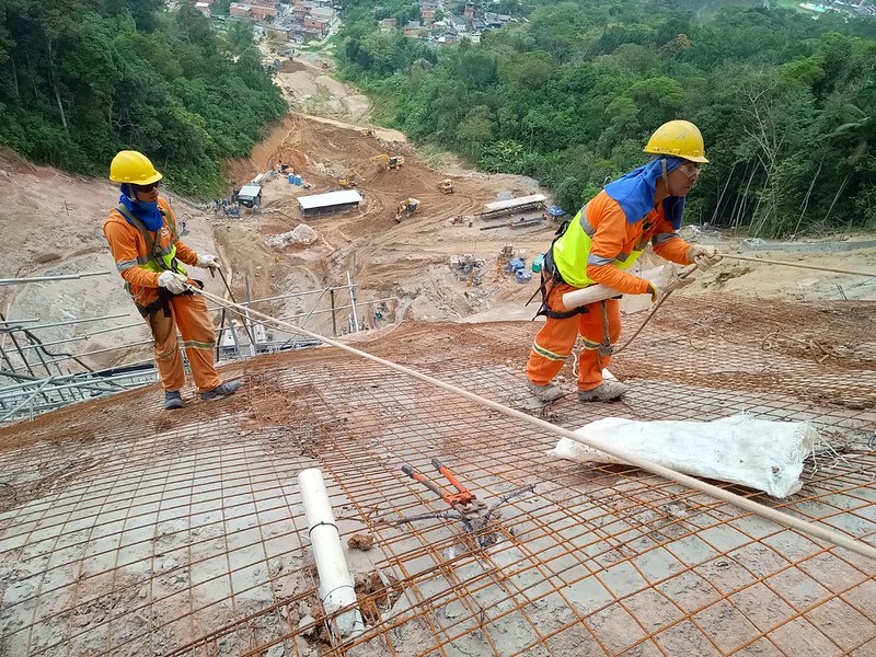 Continuam sendo feitas as obras de contenção em todas as encostas do Morro Barreira do João Guarda, em Guarujá. Por conta das características do terreno, as equipes passaram a utilizar o rapel para ter acesso ao paredão íngreme ao longo da área. As obras no local estão 56,23% concluídas.