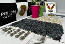 Posteriormente, o homem foi imobilizado, e com ele, foi encontrado uma sacola com porções de maconha, cocaína e crack. O suspeito foi preso e encaminhado a delegacia seccional da cidade, onde o caso foi registrado como tráfico de drogas, resistência, desacato e lesão corporal.