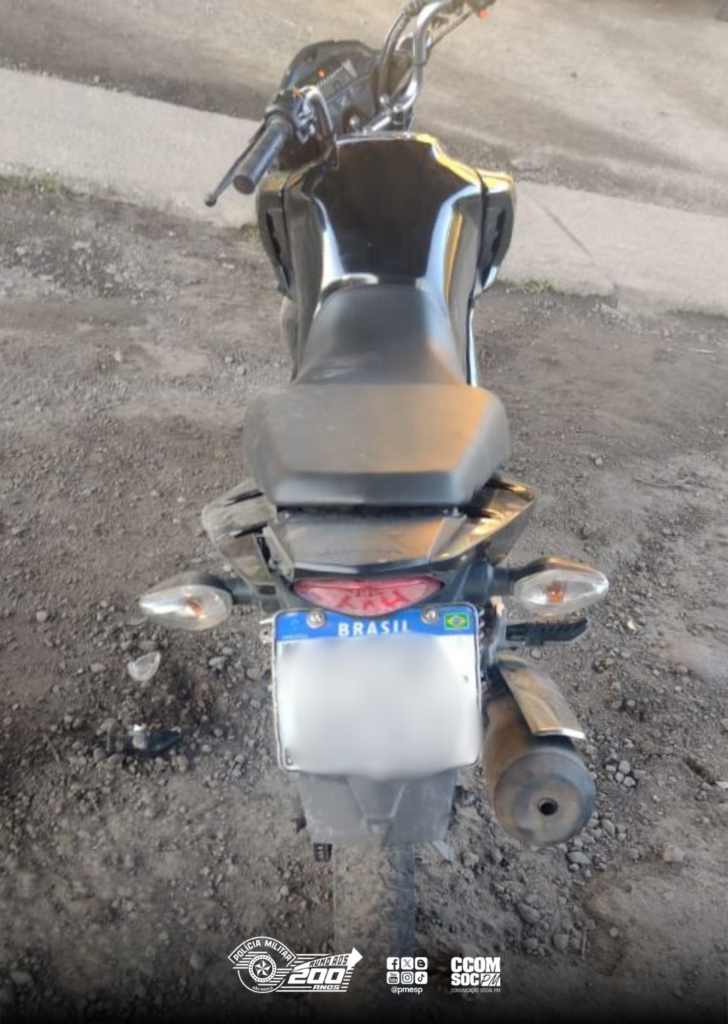 Policiais do 1º Batalhão de Polícia Rodoviária realizavam patrulhamento pela região, quando suspeitaram de dois homens que estavam em uma motocicleta. Na tentativa de abordagem, a dupla não obedeceu às ordens de parada e empreendeu fuga.