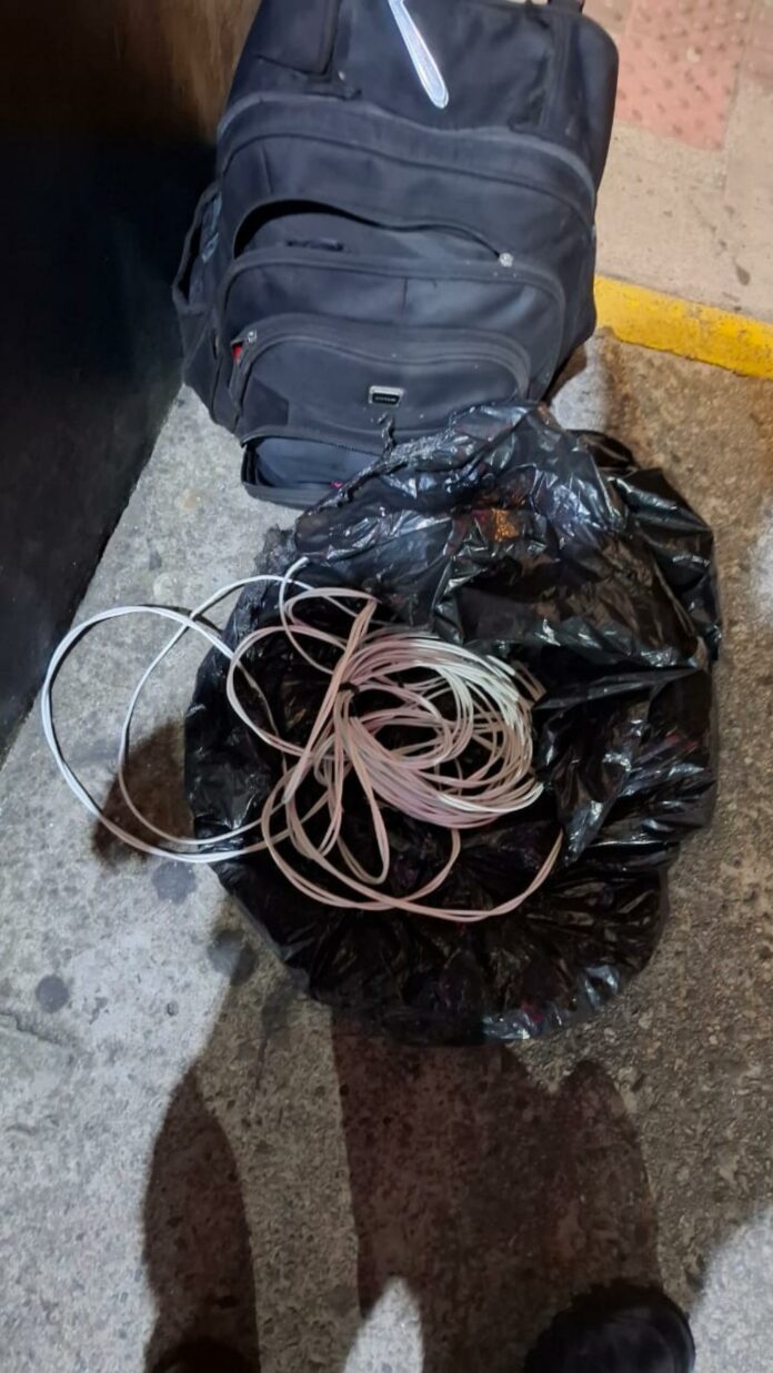 O suspeito, ao perceber que seria detido, pulou do poste e saiu correndo deixando uma mochila com a fiação furtada, mas foi rapidamente alcançado na Rua Amador Bueno.