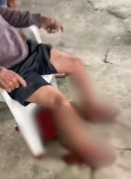 Outro registro mostra o homem sentado antes de receber devido socorro, confira: