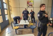 Durante patrulhamento, a equipe recebeu uma denúncia anônima sobre a presença de um indivíduo ligado a uma facção criminosa, responsável por pontos de tráfico e execuções realizadas no chamado “Tribunal do Crime”. Os agentes foram até o local indicado e flagraram o homem manipulando uma mala com entorpecentes.