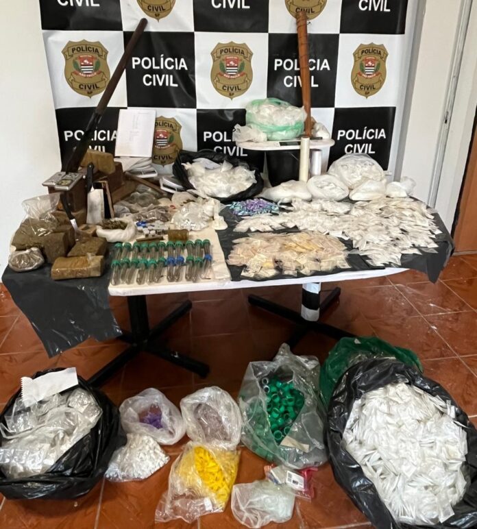 Segundo a Polícia Civil, no local em que o suspeito foi apreendido, os agentes localizaram um casal no interior do imóvel, sendo um deles identificado como procurado. Durante a diligência, foram encontradas várias porções de drogas tais como 7.054 porções cocaína, cinco sacos a granel, sete pedaços e 249 porções prontas para consumo de maconha e 300 porções de crack. Além disso, um caderno com anotações referentes à organização do tráfico ilícito de entorpecentes, balanças de precisão e materiais destinados à produção e embalo de drogas também estavam no local. As drogas passarão por perícia para constatação.