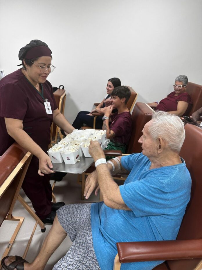 Com direito a pipoca e suco (tudo preparado de acordo com as dietas prescritas aos pacientes) além de água, a plateia assistirá ao filme “Superação – O Milagre da Fé”, longa baseado em uma história real, evidenciando o poder da fé e da oração, quando uma mãe junta todas as suas forças para pedir a Deus pela sobrevivência do filho, um garoto de 14 anos, que caiu em um lago congelado e foi dado como morto no hospital para onde foi levado após resgate.