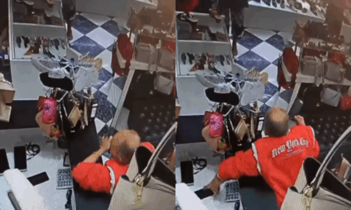 O caso aconteceu na manhã desta sexta-feira (13), na Avenida Mal. Deodoro. Na imagem, o idoso aparece falando ao celular, observando alguns itens à venda, até que o mesmo se pendura no balcão do caixa, e encontra o celular.