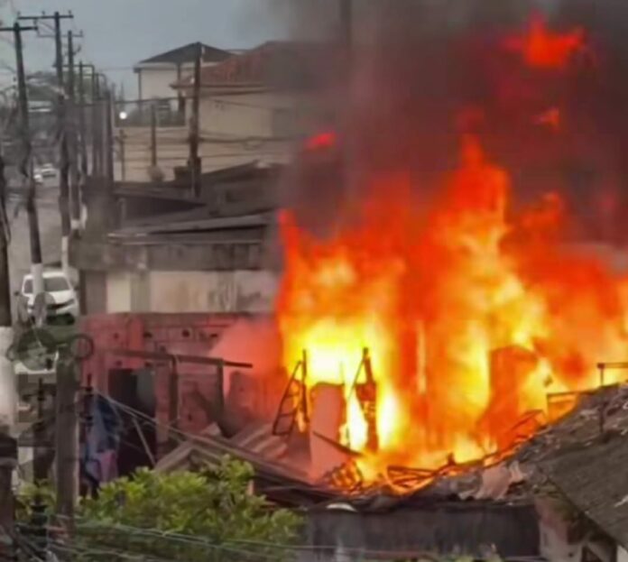 As chamas tomaram o espaço do imóvel localizada na Rua Caramuru, na altura do número 14, em São Vicente, na manhã desta sexta-feira, por volta das 07h17. O Corpo de Bombeiros foi acionado para atender a ocorrência e deslocou uma viatura e três bombeiros para o local.