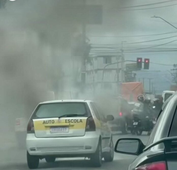 O carro de uma autoescola pegou fogo no cruzamento da linha amarela com a Rua Frei Gaspar, próximo ao número 1371. O incidente aconteceu na tarde de sexta-feira (12).
