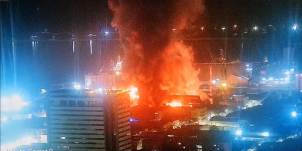 A Prefeitura de Santos informou que a Defesa Civil foi acionada e fará a vistoria estrutural, assim que houver condições para adentrar no galpão.