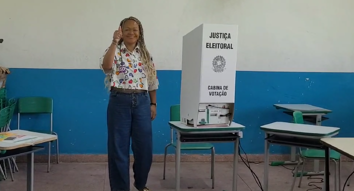 A candidata Poliana Nasciemnto Fé, chegou acompanhada da irmã e depois de confirmar seu número na urna, acompanhou os pais a irem votar. Poliana votou na escola Professor Jon Teodoresco, e posou para fotos junto com a irmã e os pais.