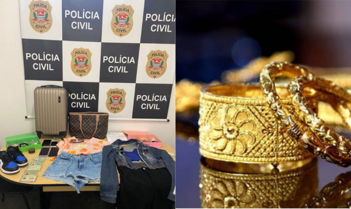 A equipe do 2º Distrito Policial de Santos se dirigiu ao local para dar cumprimento ao mandado de busca e apreensão decorrente das investigações. Em buscas no imóvel da investigada, foram apreendidas parte das joias furtadas, e outras objetos (mala, roupas e documento em nome de terceira pessoa) que reforçam sua participação no crime.