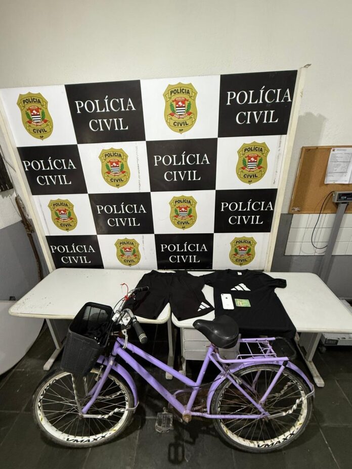 A roupa utilizada pelo homem no roubo foi apreendida, bem como uma bicicleta. O mesmo informou que os comparsas residem no bairro Morrinhos, mas não precisou a localização. O simulacro de arma utilizado pelo trio, segundo o suspeito, foi descartado em um local não mencionado por ele.