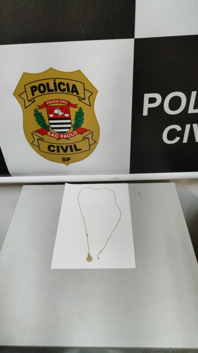 Os policiais alcançaram o indivíduo em frente à igreja do Embaré. Ele caiu no solo e cuspiu a corrente da vítima dentro de um bueiro na via pública. O objeto, avaliado em R$3.000,00, foi recuperado e restituído à vítima.