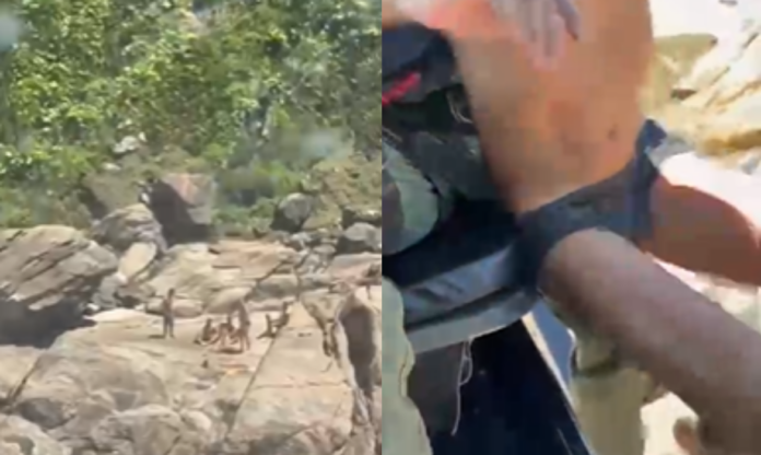 Uma criança de 12 anos e agentes do GBMar (Grupamento de Bombeiros Marítimo) ficaram ‘ilhados’ nas pedras da costa da Praia de Pernambuco, em Guarujá, litoral paulista, e precisaram de resgate do helicóptero águia, na manhã deste sábado (15).
