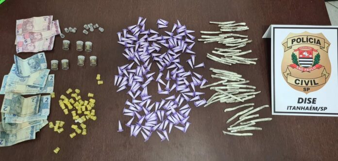 Ambas ações foram realizadas na tarde de quinta-feira (13). A primeira ocorreu na Rua Maria Benedito de Matos, no bairro Sabaúna, em Itanhaém. O jovem comercializava drogas e com a chegada da equipe tentou fugir subindo nos telhados das residências próximas. Com ele foi apreendida uma sacola contendo 70 porções de cocaína, 6 pedras de crack, 7 porções de haxixe e 29 porções de maconha.