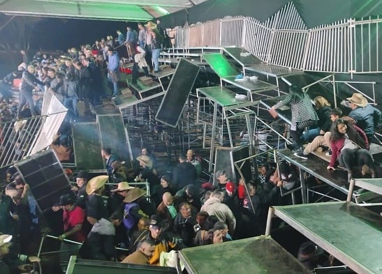 A queda da arquibancada ocorreu no último sábado (19) durante o evento 3ª Expo Eldorado, antes do show da dupla Gian & Giovani.