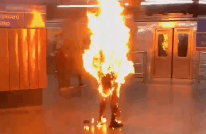 Segundo relatos de testemunhas, a ação foi rápida. O homem despejou um líquido inflamável sobre si e imediatamente se incendiou um funcionário do metrô disse que o idoso também teria bebido esse líquido.