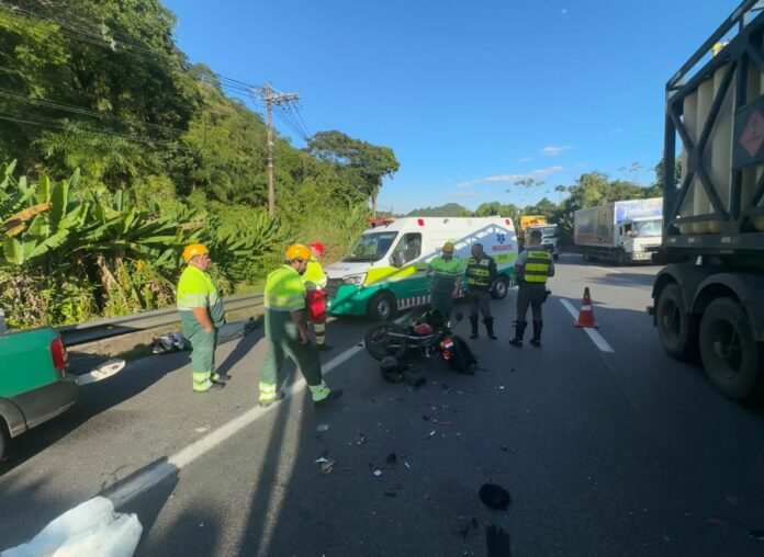 Um motociclista morreu após colidir na traseira de uma carreta na Rodovia Cônego Domênico Rangoni, na altura de Santos, no litoral de São Paulo.