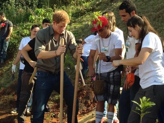 A visita em questão aconteceu em 25 de junho daquele ano, e o príncipe, além do plantio realizado em uma área do Parque Estadual da Serra do Mar, também realizou um ‘tour’ pela comunidade Cota 200, onde aprendeu a fazer comida com biomassa de banana e prestigiou uma intervenção artística dos alunos do projeto Cota Viva, que promove cursos gratuitos sobre meio ambiente e visa revitalizar bairros com o plantio de árvores.