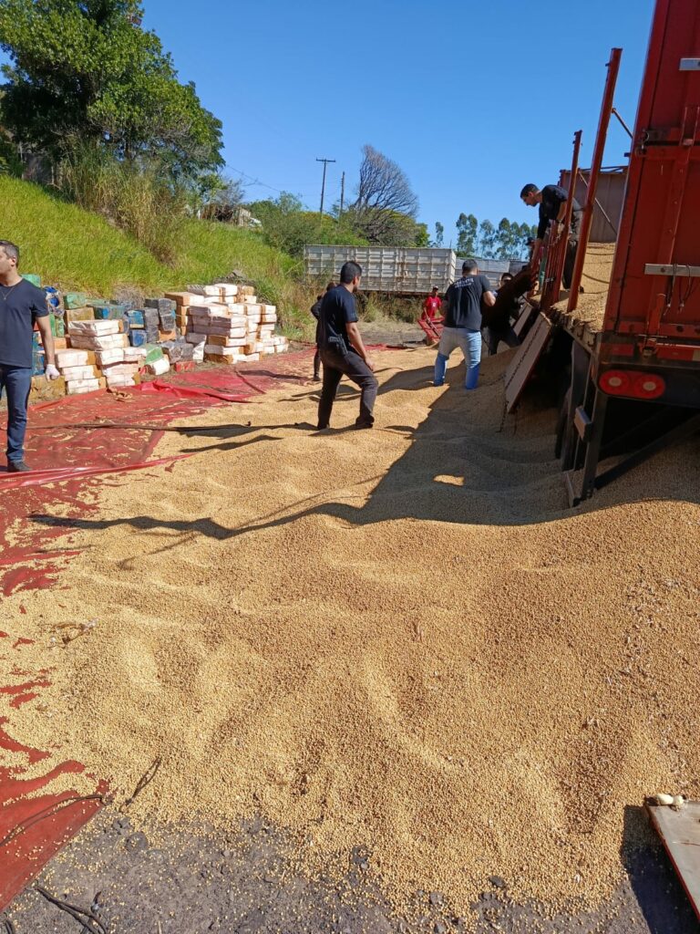 Os agentes localizaram o caminhão na rodovia Arlindo Bettio, em Rosana. Com o motorista havia um recibo da carga de soja, indicando o deslocamento até o Porto de Santos, no litoral paulista. No interior do caminhão foram localizados diversos fardos de maconha, totalizando 7,2 toneladas. Um segundo veículo, que atuava como batedor, também foi interceptado. O condutor foi preso por suspeita de envolvimento.