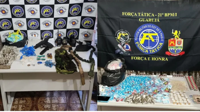 Um homem, de 42 anos, foi preso em flagrante por tráfico de drogas, no Caminho São Francisco, em Cubatão, litoral paulista. A Polícia Militar também apreendeu uma grande quantidade de diversos tipos de drogas, além de outros itens ligados a ação criminosa e uma pistola.