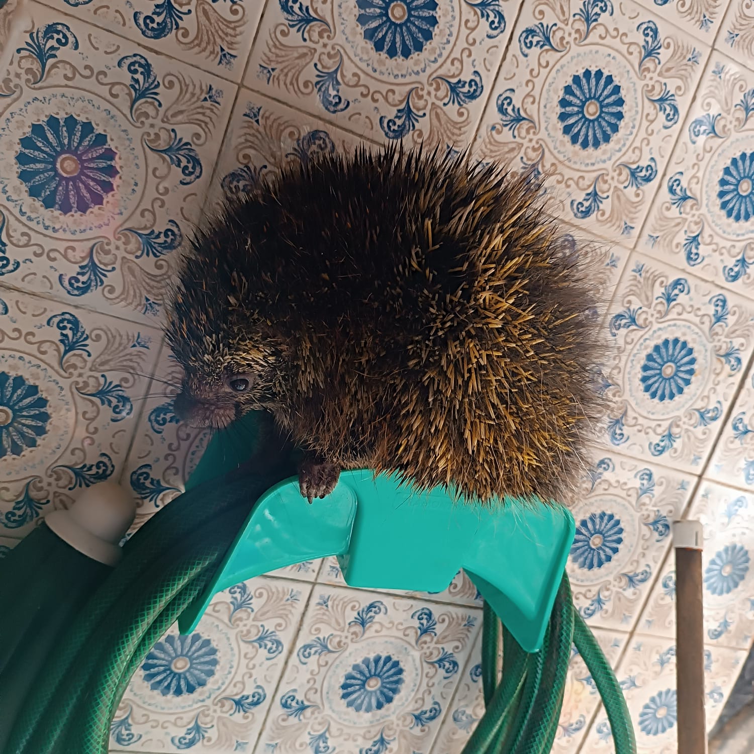 No momento da localização, o animal equilibrado no suporte de uma mangueira e estava tremendo. Os guardas utilizaram técnicas de manejo para fazer a captura do ouriço, porque ele estava arisco.