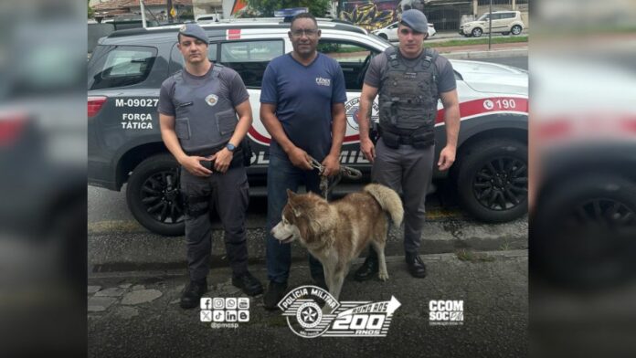 Um cachorro, da raça husky siberiano, foi resgatado pela Polícia Militar prestes a ser atroplado, na Praça Visconde do Embaré, situada no Centro da cidade de Santos, litoral paulista. Após o susto, o animal foi devolvido ao dono.