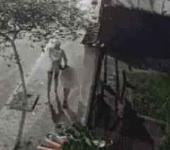 Em seguida, a menina desceu do carrinho e corre para longe, mas foi contida por um homem que estava no sentido contrário. Ao se aproximar da criança a mulher puxou o cabelo dela e voltou a caminhar.